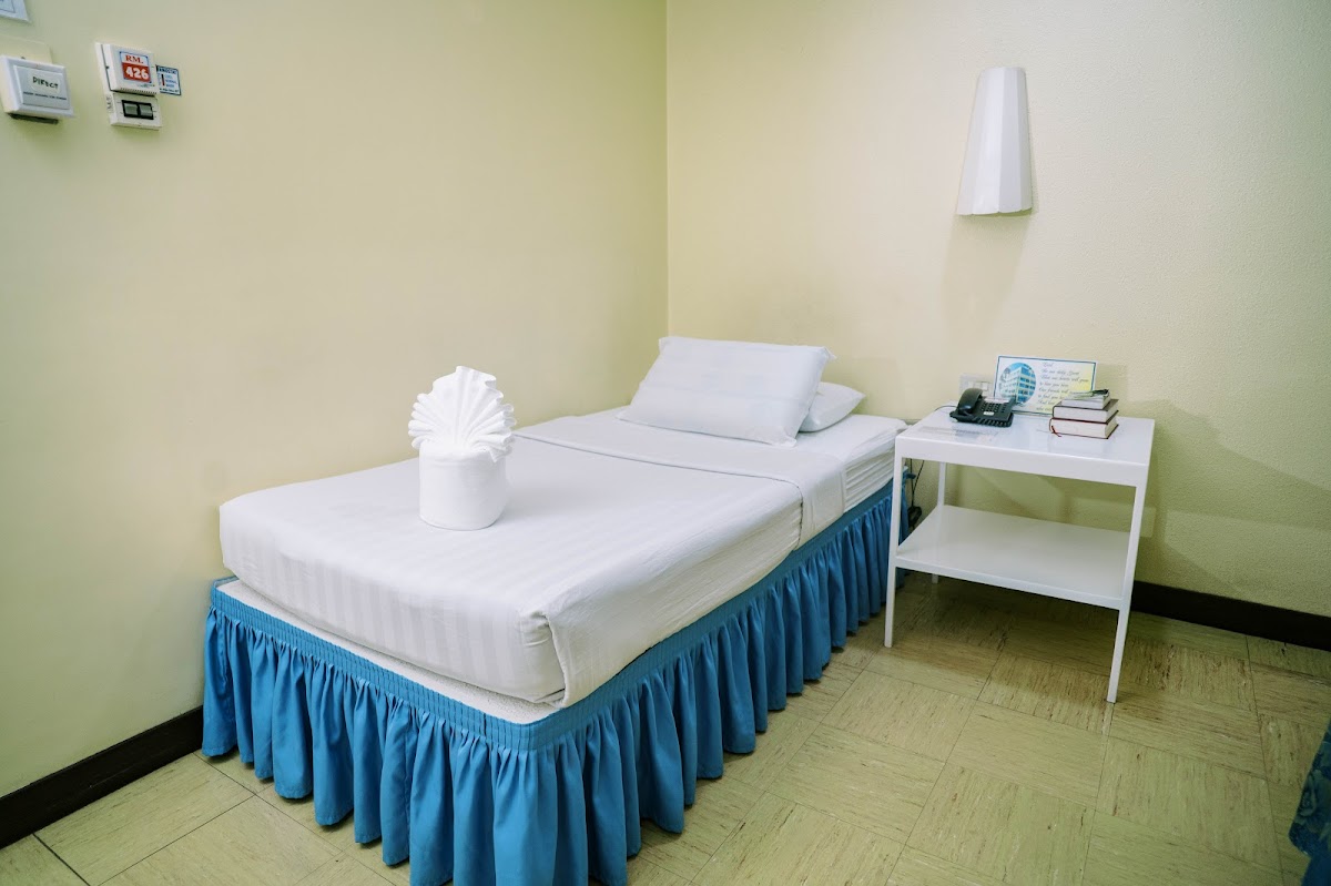 I was surprised upon reaching my assigned floor seeing an information desk which resembles a nurse’s station in a hospital. It was probably the first time a saw that kind of setup in a hotel. Worse, the room smelt like a hospital room! The setup also resembles one! But don’t get me wrong, I will still recommend this place. For one, I LOVE its location - just in front of the Boulevard. My husband and I found it very convenient to go to there for a late afternoon/early morning stroll. Eventually, I just got used to the hospital-like setup. The feeling just passed and I just forgot about it. There’s limited parking in front of the hotel, but a lot of parking spaces at the back. The staff are very courteous and approachable. They have assigned staff 24/7 staying on each floor so it’s pretty convenient if you need assistance with anything. They also sell food, drinks, personal hygiene essentials, etc. per floor. They have a water fountain/dispenser which is free of charge. Just learned they increased their prices recently. My husband used to get the room priced at Php 1,500. Now it’s Php 1,800 (excluding breakfast). The hotel’s old, yes. Is it haunted? I don’t know. Will I come back? Definitely, yes.